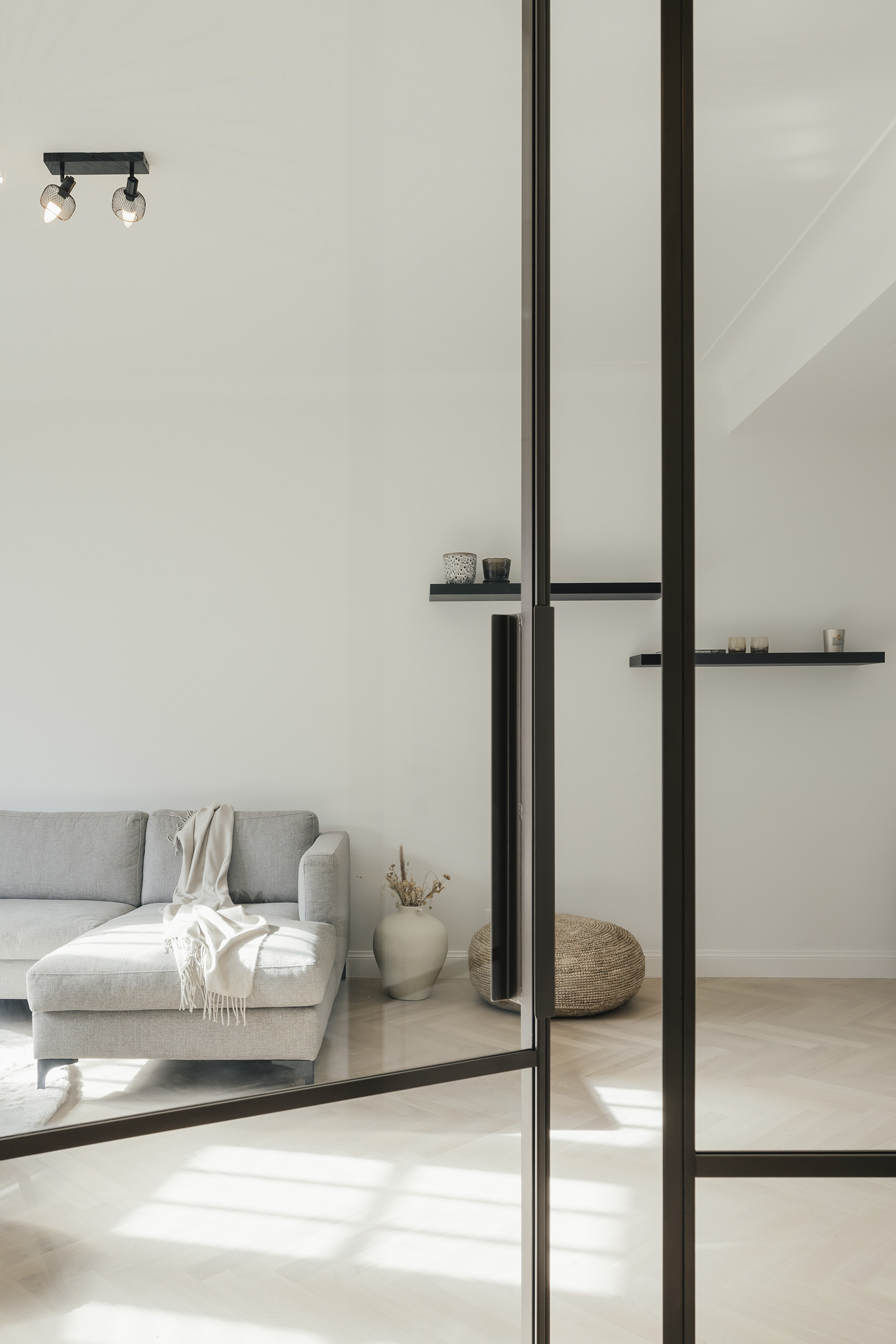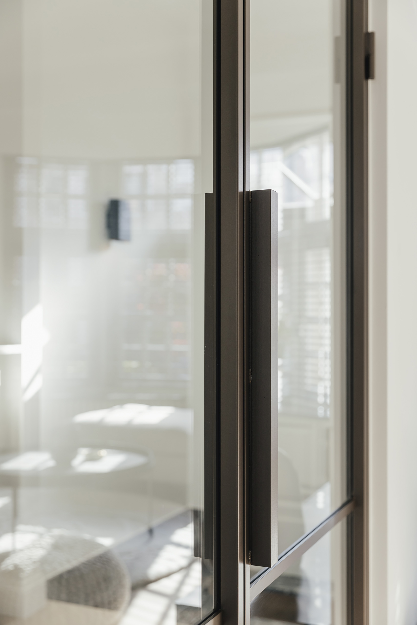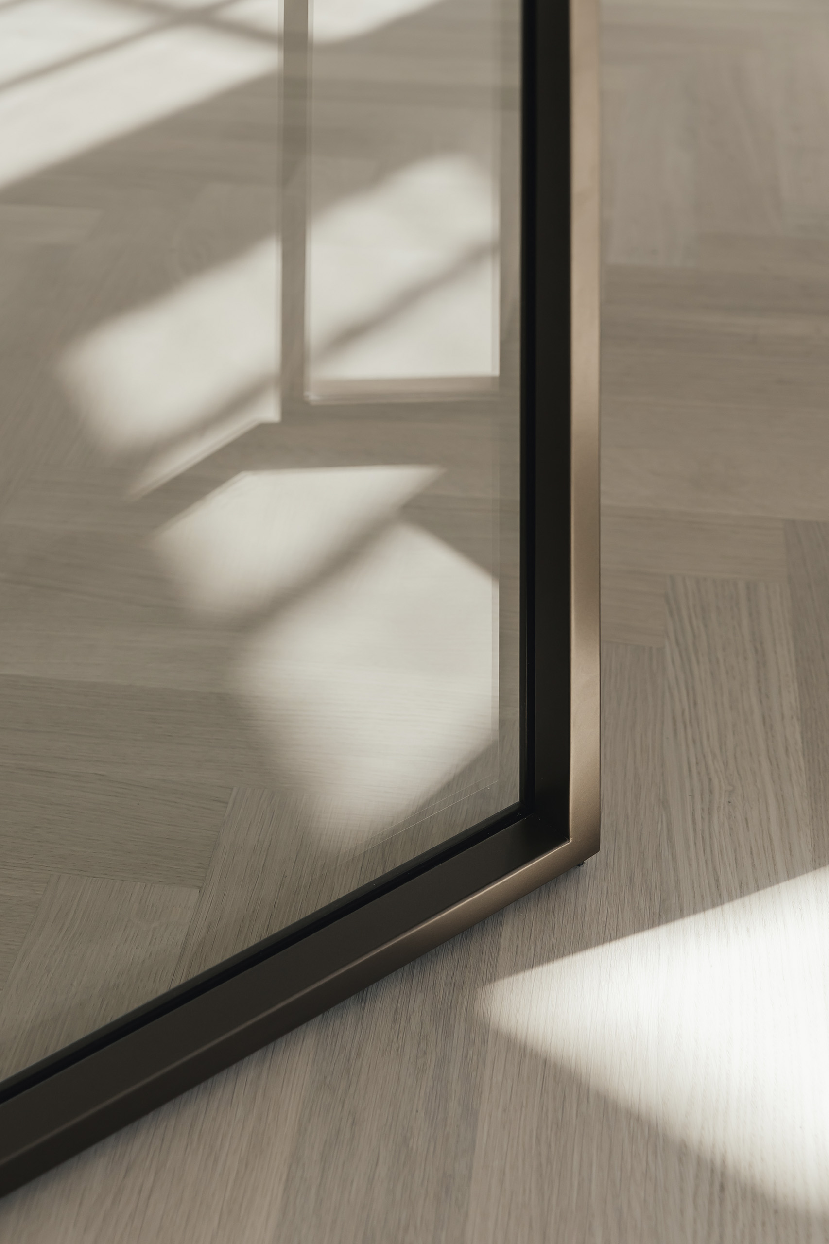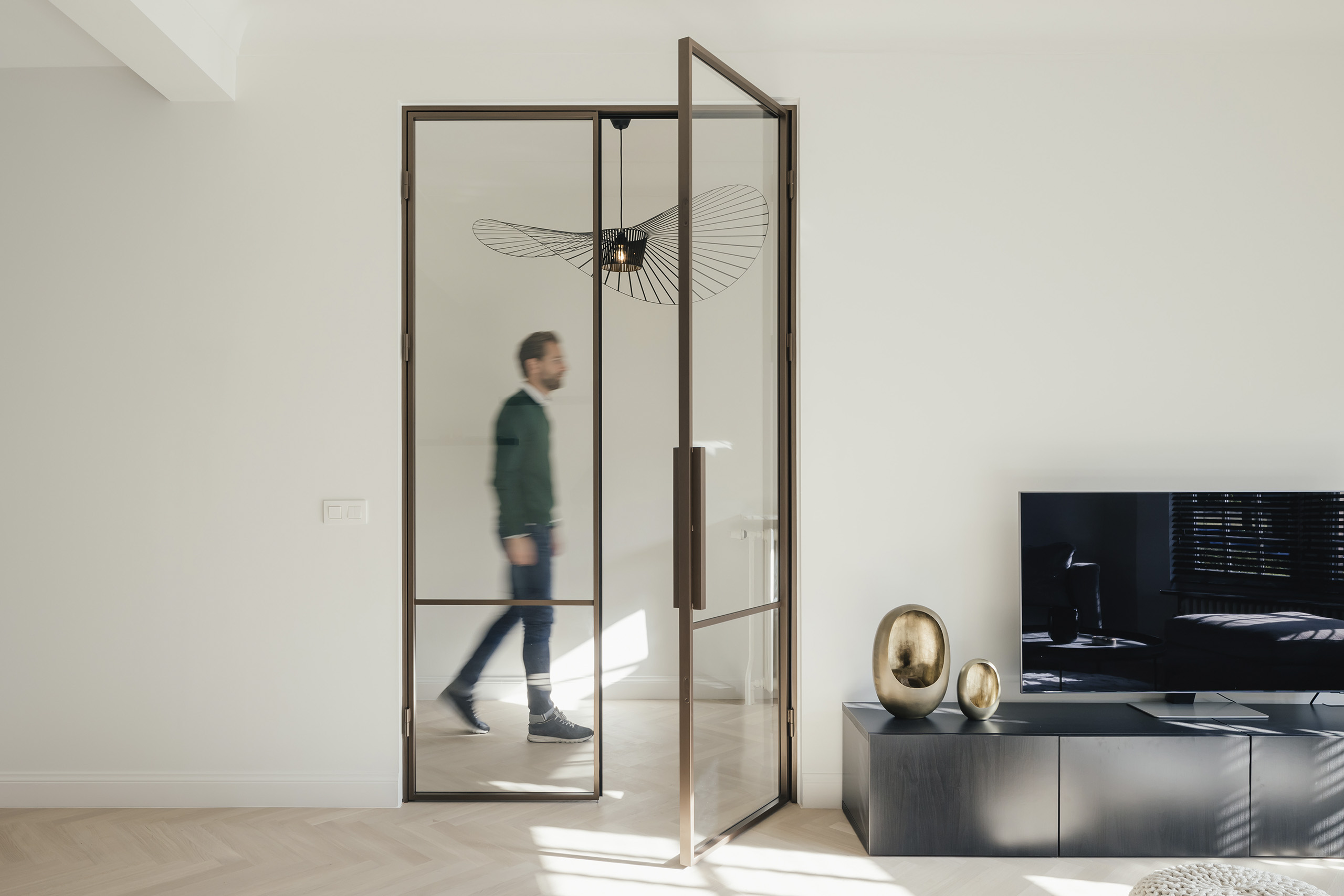 Le verre transparent, associé à la couleur choisie, apporte une sensation de légèreté à la porte tout en maximisant l’entrée de lumière dans la pièce.