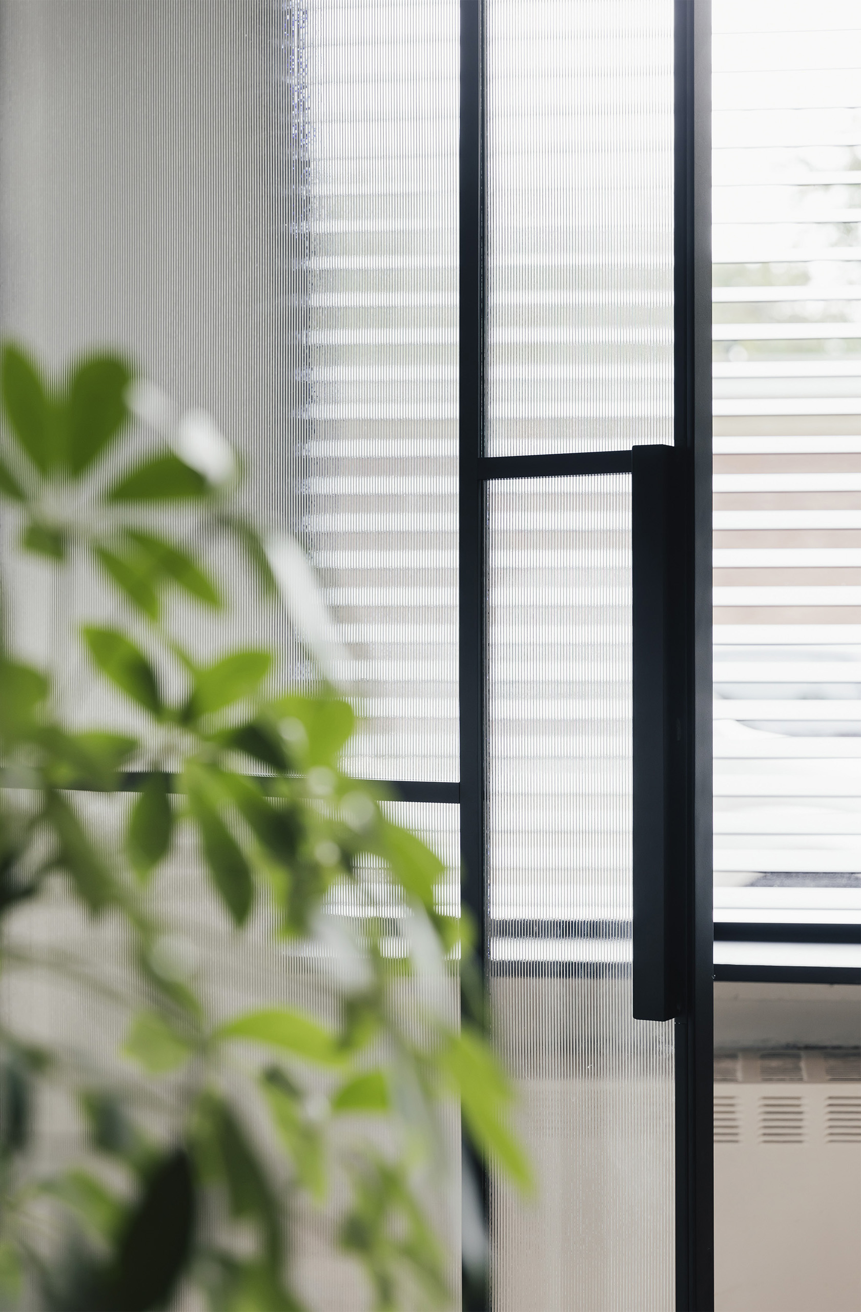 Le verre transparent et la couleur appliquée donnent à la porte une impression de légèreté et permettent un éclairage maximal de la pièce.